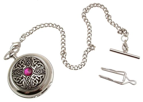 -. Title : Engraving included - Solid pewter fronted mechanical skeleton pocket watch - Celtic Knot with stone design 7