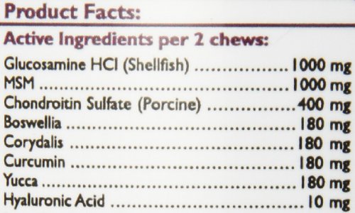 -. Feature : Recommended for maintaining joint support / Helps maintain the normal viscosity of joint fluid / 60 count soft chews / Average 30 day supply based on a 30-80 lb. dog