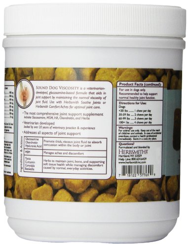 -. Title : Herbsmith Sound Dog Viscosity 60 Count Joint Support Chews for Dogs and Cats