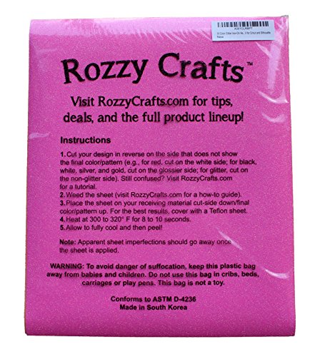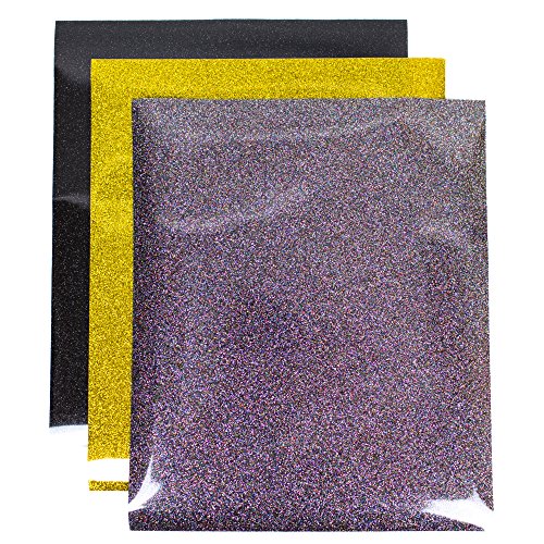 - Each set comes with 18 sheets of high-quality glitter heat transfer vinyl and includes the following colors: Silver, Gold, Green, Red, Hot Pink, Violet, Royal Blue, Black, Multi, Light Green, Aqua, Deep Purple, Rainbow White, Rainbow Yellow, Rainbow Blue, Neon Rain Green, Neon Rain Orange, and Neon Rain Pink