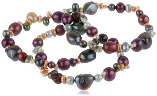 3 Piece Multi-Color Mix Shapes Dyed Freshwater Cultured Pearl Stretch Bracelet Set, 7.5"