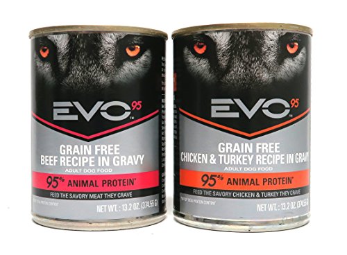 -. Title : EVO Grain Free Wet Dog Food Variety Pack - 2 Flavors (Chicken / Turkey Recipe & Beef Recipe) - 13.2 Ounces Each (6 Total Cans)
