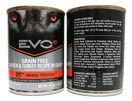 -. Feature : EVO Grain Free Wet Dog Food Variety Pack - 2 Flavors (Chicken / Turkey Recipe & Beef Recipe) - 13.2 Ounces Each (6 Total Cans) / 100% Grain-Free with No Glutens / 100% Complete & Balanced, No Potato Added / Made in the USA / 12.5 Ounces Each (6 Total Cans)
