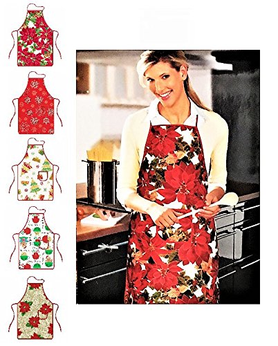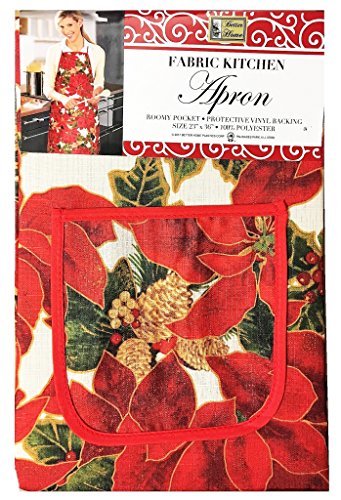 Fun Fabric Christmas Kitchen Apron, Strong Vinyl Backing with Convenience Pocket and Long Ties, 23" by 36" Holiday Decorative Unisex Fashion (Poinsettia Sparkle)