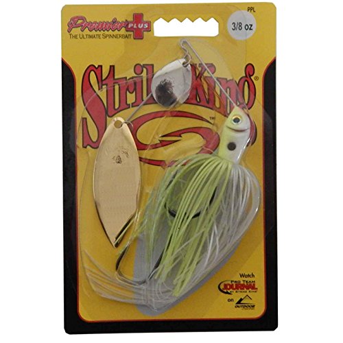 ReleaseDate : 2010-08-02 Studio : Strike King Lure Company Publisher : Strike King Lure Company Binding : Sports Product Description The Strike King Premier Plus Spinnerbait features premium components. Includes 24K gold and/or nickel plated colorado/willow blades, Sabre Point trailer hook pre-rigged, Spin Eze ball bearing swivel. We use our flex bend spring tempered stainless steel wire, exclusive Perfect Skirt with Magic Tails, and hand sculpted head with holographic 3D eyes. Features a colorado/willow blade, both silver. 0