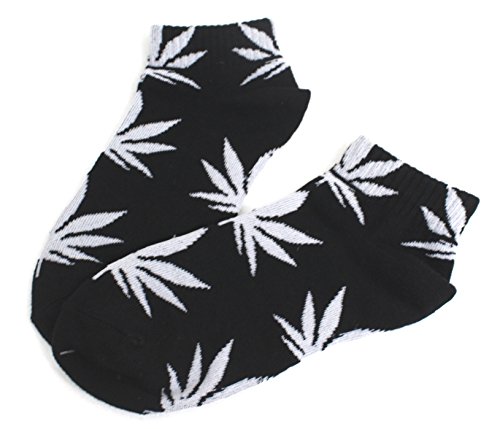 - Title : 1 Pair of HighWalkers - Weed Socks - Black Socks/White Leaves - No Show - EDMPlug