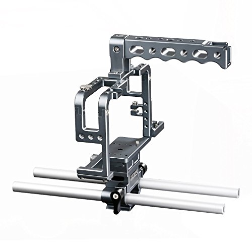 Anodized Aluminum. Multi-Threaded Cage and Removable Top Handle. Rod Clamp with 15mm Rods for Mounting Follow Focus, Matte Box, etc.