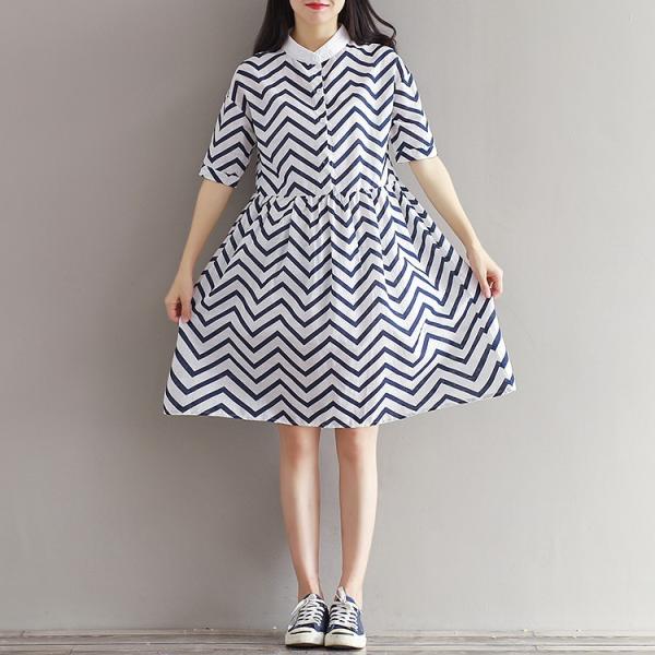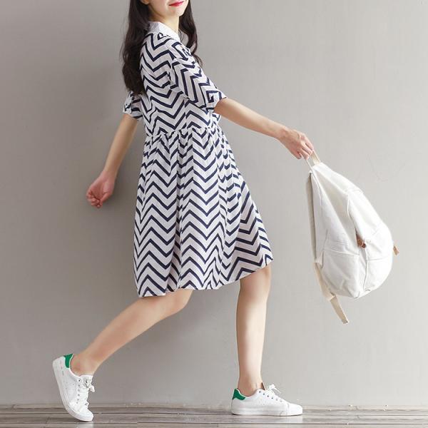 変則的なストライプデザインのワンピース。