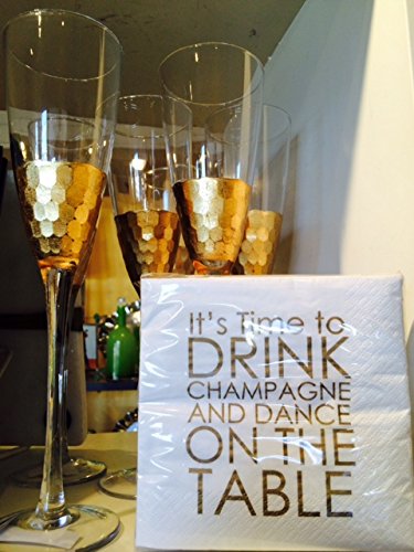 -. Feature : 20 pack of 3-ply Wedding, Bachelorette, Engagement, Graduation, Birthday Cocktail Napkins / White, Gold / It's Time to Drink Champagne and Dance on the Table.