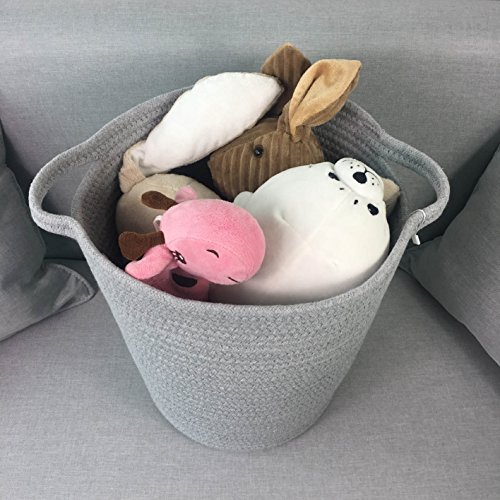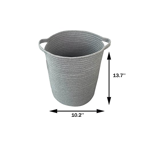 ICEBLUE 1.2''X13.7''X11.8 Cotton Rope Storage Basket with Handles Clothes Hamper Toys Nursery Bins Closet Organization (Grey)