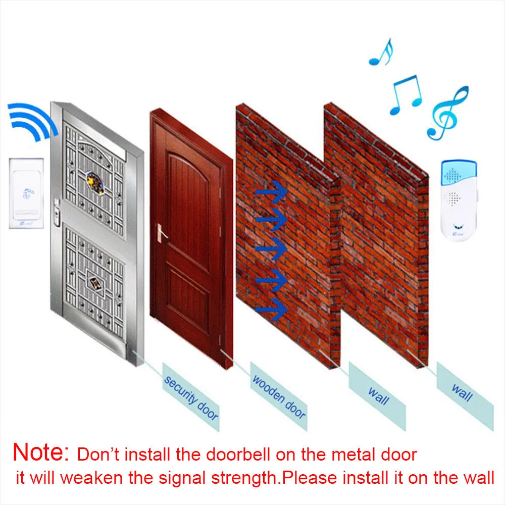 1.You can install the doorbell in kitchen, living-room, bedroom, etc.