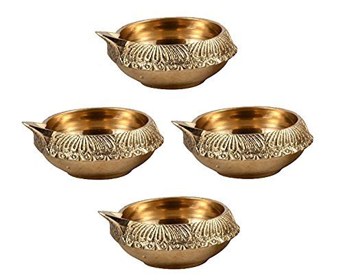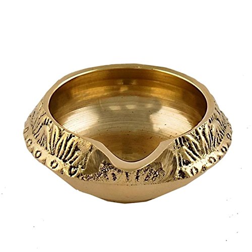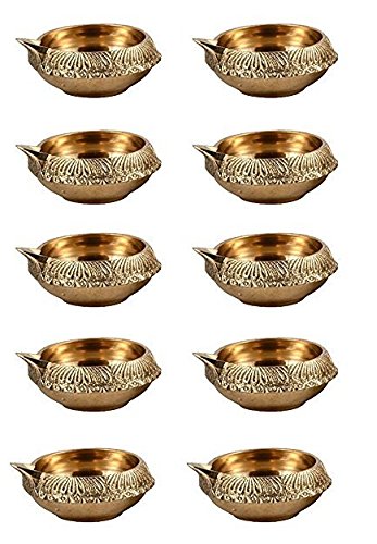 100% Pure Virgin Brass Diwali Diya (Set of 10) Indian Pooja Oil Lamp - Golden Engraved Design Dia - 2.5 Inch. Deepawali Diya / Tea Light Holder / Diwali / Christmas Decoration. Traditional Oil Lamp