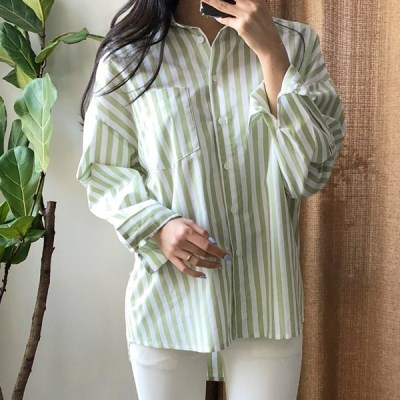 스트라이프 패턴 특유의 멋스러운 셔츠로비침도 거의 없어서 만족스러워요! / green