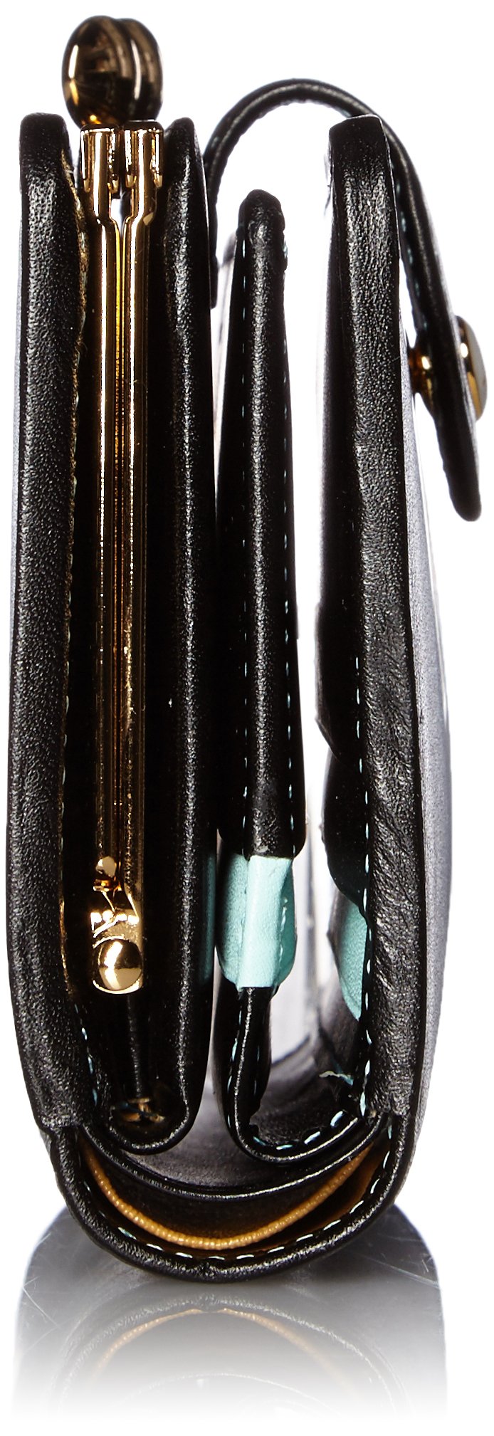 Two fold wallet made with glossy leather and leather.