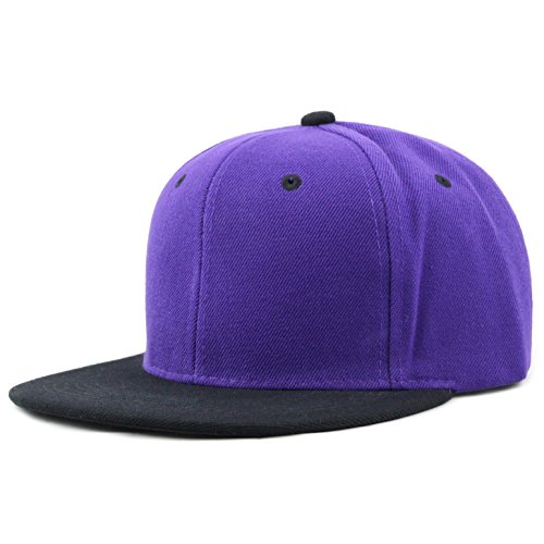 Title : The Hat Depot 1300 Premium Quality Plain Flat Snapback Baseball Cap (Purple Black)