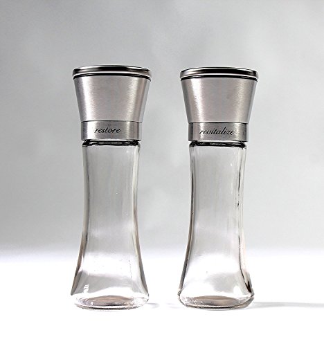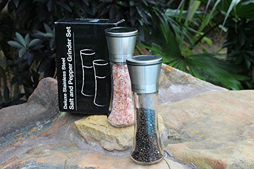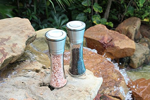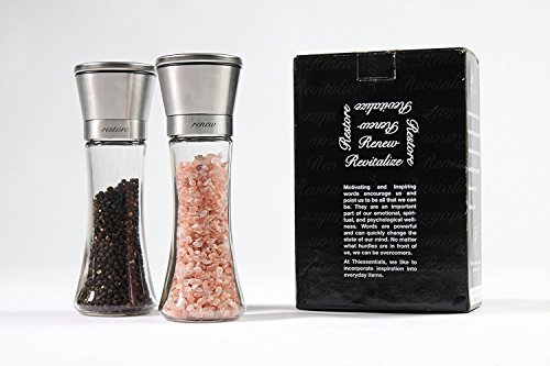 Salt and Pepper Grinder Set, Set of 2 Brushed Stainless Steel Salt and Pepper Grinder Mills, 6 Oz Glass Tall Body , Inspirational Gift By Thiessentials