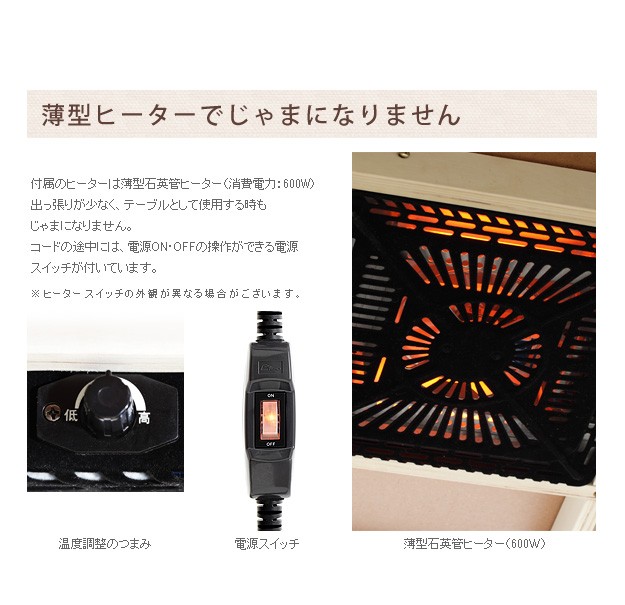 薄型石英管ヒーター(600W・中間スイッチ式)、コード長3m