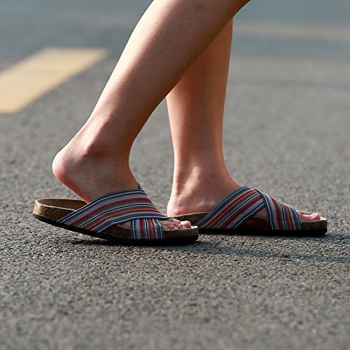 -. Feature : Women Sandals Size US 6=Foot Length 230mm, US 7= 235mm, US 8= 240mm, US 9= 245mm, US 10= 250mm, US 10.5= 255mm / Elastic on Top is Thick and Holds the Feet Down But Allows for Flexibility When Walking,Even Fitting for Fat Foot,Not Cling to the Skin or Cause Sweaty Feet / COW SUEDE INSOLE,More Moisture-Absorbent,Breathable and Softer Than Micro Suede / CORK & RUBBER Footbed, Non-Slip & Durable 8mm EVA Outsole, NO Rubbing / NO Hurting with All Day Walking / Slip On Beach,the Sand Doesn't Get Stuck in the Bottom, and Shakes Off Fairly Easy