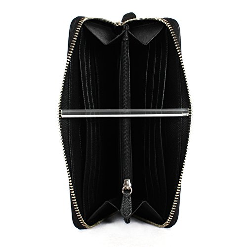 Inside features 12 card slots, multiple compartments, zippered center compartment