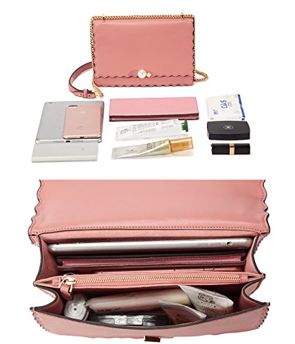 -. Feature : Country of Origin: Made in China / Material Features: Nappa Leather bag can be used for multipurpose handbag, flap shoulder bag and messenger bag. Nappa Leather surface which is smooth, soft, chic, delicate and durable. The adjustable long shoulder strap adopts high-grade Nappa leather will comfortable to wear / Exquisite Exterior: Fashionable and graceful color with pearl of buckle closure in front of bag is very delicate and chic for women who love vintage style fashion. The bag is waterproof and easy to clean, is the best fashionable accessories to carry your daily stuff, such as iPad mini, iPhone 7 Plus, lipstick, wallet, keys and so on / Durable Interior: Small size bag but have large capacity can take all kinds of your stuff, 1 large main pocket for mobile phone, wallet or cosmetic, 1 zipper pocket for keys, 1 open pocket / Suitable for Occasion: This is a roomy multi function shoulder bag or crossbody bag, also convertible multi-use for shopping, dating, traveling and so on. It is best choice for carry it in daily if you want