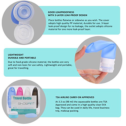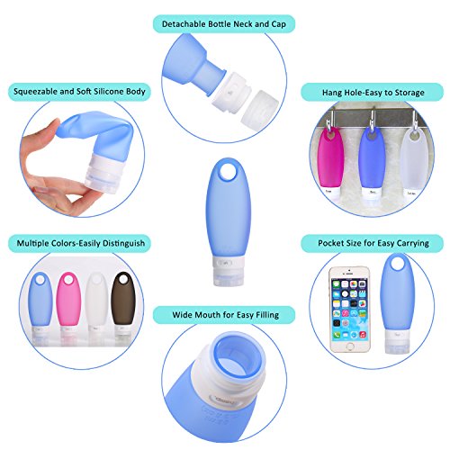 Features ☆ TSA Carry-on Airline Aprroved ☆ with whole liquid injection processing, zero pollution ☆ Soft and feel good to touch with perfect joint line ☆ Easy to refill and wash again ☆ 4 2 pack is a perfect combination for travelling ☆ Separable for the cap and tube body ☆ Duration, Squeezable, Portable, Carry-on Airline Aprroved ☆ No-drip Value and Leak-proof design