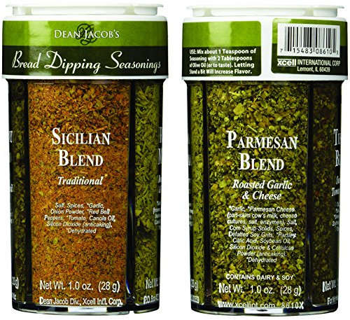 -. Binding : Misc. -. Brand : Dean Jacob's -. EAN : 0085506905417 -. Feature : This Dean Jacob's Bread Dipping Set includes: / 1 - White porcelain cruet. Holds approximately 6¾ fl. oz. / Set of 4, 3½" round, white, porcelain dipping saucers. / 2- Large 4in1 Compartment Jars with 1 oz. each of Dean Jacob's Bread Dipping Seasonings: ♥ Parmesan Blend with Roasted Garlic & Cheese ♥ Traditional Sicilian Blend ♥ Rosa Maria with Rosemary & Garlic ♥ Tuscany Blend with Sun-dried Tomato & Basil / NEW in 2016 - Brand new combinations! Look for 16 newly added Dean Jacob's Bread Dipping and 10 newly added Crème Brulée Collections and Gift Sets. You'll find brand new Salt-Free / No Salt Added Bread Dipping Sets as well as All Natural Crème Brulée Sets with Nielsen-Massey Vanilla. -. IsAdultProduct : 0 -. Label : Xcell International -. Manufacturer : Xcell International -. PackageQuantity : 7 -. ProductGroup : Grocery -. ProductTypeName : GROCERY -. Publisher : Xcell International -. Size : 1 Ounce -. Studio : Xcell International -. Title : Dean Jacob's Bread Dipping Seasonings - 7 Piece Set -. UPC : 085506905417