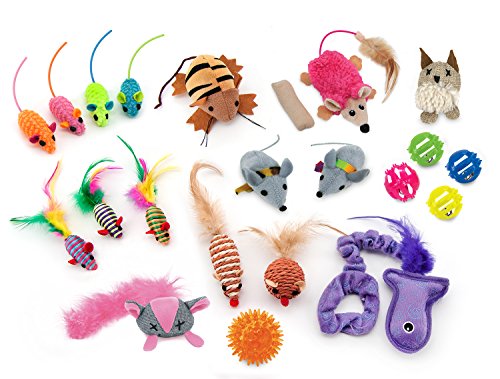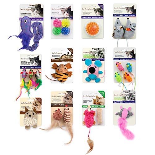 -. Feature : EXCITING VARIETY PACK: Great value assortment gives your kitty a choice of 12 different playthings - keep toys available around your home. / INTERACTIVE PLAY: Bond with your favorite feline by playing together - catnip, feathers, lights, movement and sounds will be irresistible to curious cats! / PLAYFUL INSTINCTS: Encourage your cat's natural behaviors - watch your kitty pounce, dive, hunt, chase, stalk and capture her colorful "prey". / NATURAL MATERIALS: Condition your cat's claws by encouraging her to scratch on twined and roped toys - not your furniture! / KEEP KITTY BUSY: Perfect for entertainin your pet when she's alone - small, lightweight toys are great for your kitten to bat with her paws.