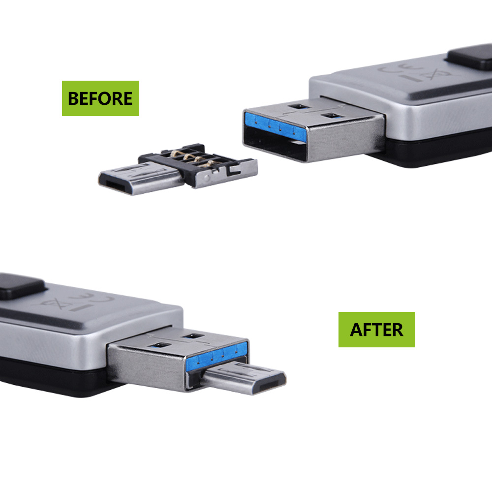 • This is a USB to micro USB connector, we plug one side to the USB stick, and the other side will connect to the phone or tablet which has OTG function. Then the data will be transferred between the USB stick and the phone. It's small enough for you to bring it everywhere with your USB stick, it will be a great convenience.