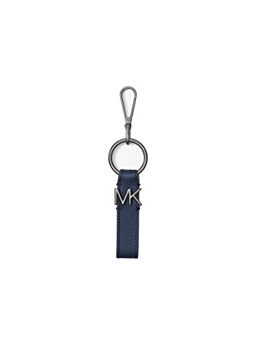 Michael Kors Men`s Logo Silver-Tone and Leather Key Chain