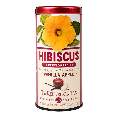 -. Binding : Grocery -. Brand : The Republic of Tea -. EAN : 0742676404422 -. Feature : Gluten Free, Sugar Free, Carb Free, Zero Calorie / A donation of $1 from the sale of each tin will be donated to Action Against Hunger, a global nonprofit working to end hunger by creating sustainable food solutions and water sanitation services to communities faced with water scarcity / Apple pie is proof that apples and vanilla make an enticing duo. / We've blended apples with the tangy berry and bright citrus qualities of exotic Nigerian hibiscus along with lively rosehips to create this aromatic, uplifting herbal tea. / Use 1 hibiscus tea bag per 6 ounces of water. Steep for 5-7 minutes. For iced tea double the amount of tea and pour over ice. -. IsAdultProduct : 0 -. Label : The Republic of Tea -. LegalDisclaimer : *This statement has not been evaluated by the Food and Drug Administration. This product is not intended to diagnose, treat, cure or prevent any disease. -. Manufacturer : The Republic of Tea -. MPN : mp-40442 -. NumberOfItems : 1 -. PackageQuantity : 1 -. PartNumber : mp-40442 -. ProductGroup : Grocery -. ProductTypeName : GROCERY -. PublicationDate : 2010-10-15 -. Publisher : The Republic of Tea -. Size : 36 Tea Bag Tin -. Studio : The Republic of Tea -. Title : The Republic of Tea, Vanilla Apple Hibiscus, 36-Count -. UPC : 742676404422