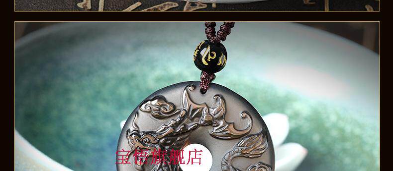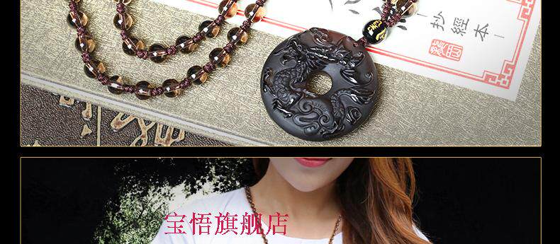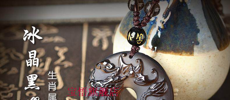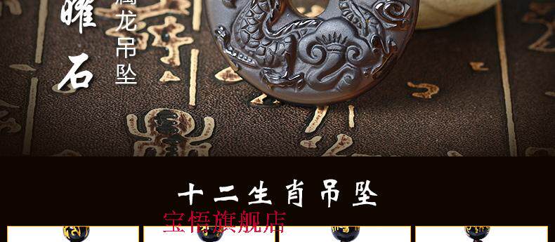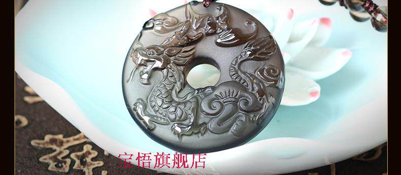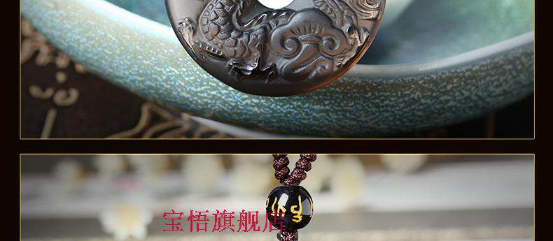 开光凤鹿护岁黑曜石吊坠生肖开光属龙人开运转运吉祥物