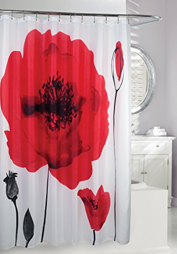 Moda at Home 204608 Poppy Explosion Water Repellent Fabric Shower Curtain, 71-Inch X 71-Inch, Red and White