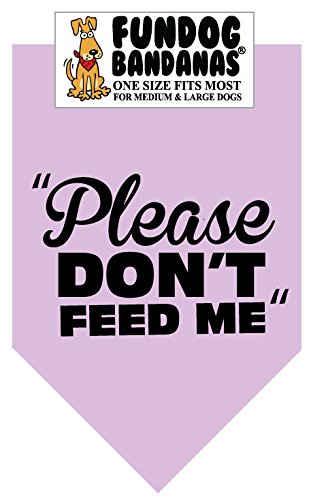 -. Binding : Misc. -. Brand : FunDog Bandanas -. Color : Light Purple -. EAN : 0083351959982 -. Feature : Cute! / Fun! / Affordable! / Makes a great gift! / 22x22x31inches -. Label : The Dog Perk Corporation -. Manufacturer : The Dog Perk Corporation -. PackageQuantity : 1 -. ProductGroup : Pet Products -. ProductTypeName : PET_SUPPLIES -. Publisher : The Dog Perk Corporation -. Size : One size fits most for medium to large dogs -. Studio : The Dog Perk Corporation -. Title : BANDANA - Please Don't Feed Me for Medium to Large Dogs - light purple with black ink -. UPC : 083351959982