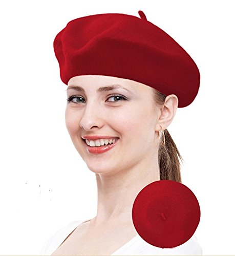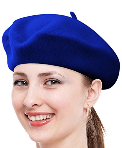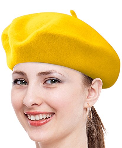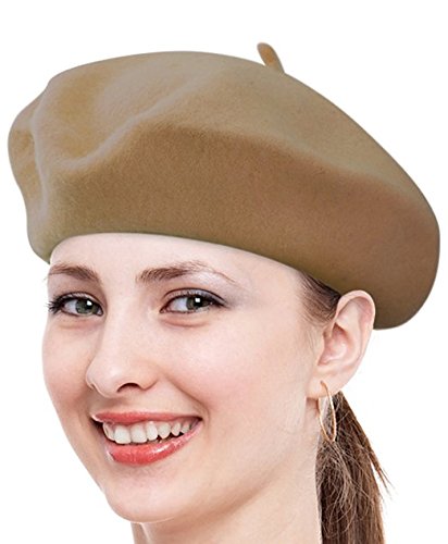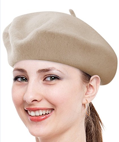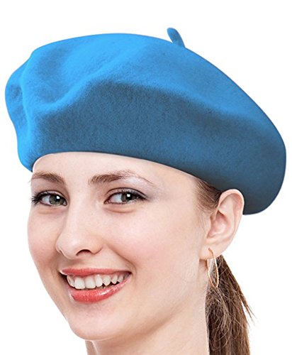 | FuzzyGreen® Classic Unisex Wool Black French Fluffy Beanie Beret Hat Cap |