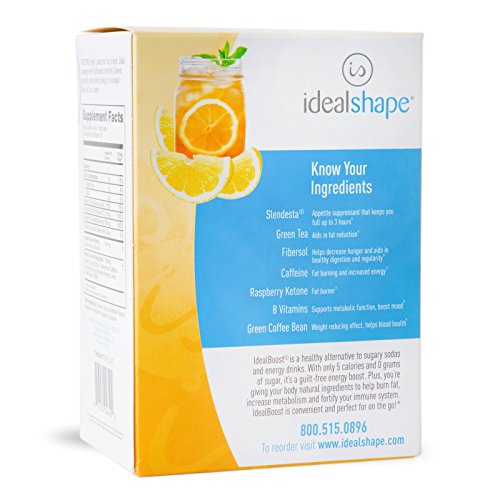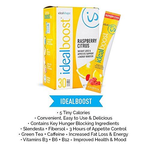 -. Binding : Health and Beauty -. Feature : HUNGER CONTROL - our weight loss drinks give you up to 3 hours of hunger control to crush cravings. / ENERGY - B vitamins and caffeine give you the energy boost you need to get through your day and stay motivated. / LOW CALORIE - diet drinks for weight loss need to be low in calories. IdealBoost only has 5! / DELICIOUS - kick your soda habit with the refreshing taste of IdealBoost weight loss drink mix. / GREEN TEA - green tea is proven to help boost your metabolism and increase fat burn. -. IsAdultProduct : 0 -. ProductGroup : Health and Beauty -. ProductTypeName : HEALTH_PERSONAL_CARE -. Title : IdealBoost, Weight Loss Drink Packets, w/ Hunger Blocking and Energy Blends, 30 Servings…