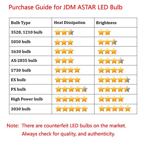Warning!!!...Don't be fooled by the fake seller and counterfeit product!!)... JDM ASTAR is the Amazon registered brand . We never authorize other seller to sell our products... Please check the seller name before you place the order... Select the JDM ASTAR instead of others who list here not identical product by lowering prices only a little to take advantage of the reputation built by JDM ASTAR . The counterfeit bulb using the cheap ,dim and low quality led chips and doesn't even have driving IC and resistor, the bulb burnt out soon . It not safe. If you receive the product from fake seller , You can file A to Z gurantee claim to get your money back without returning the counterfeit product " Also, please report the violation at ....... http://www.amazon.com/gp/help/reports/contact-us. 0 |