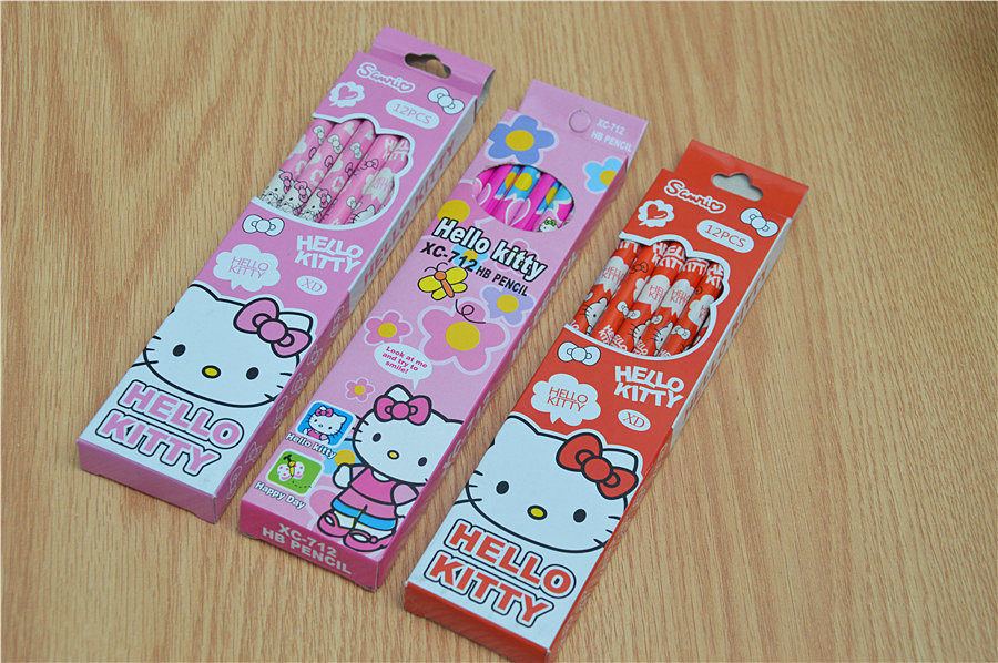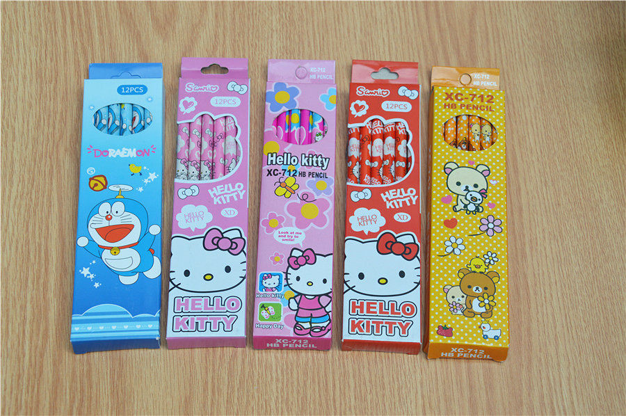 hello kitty卡通木铅12支纸盒包装铅笔 机器猫木制铅笔 多款图案