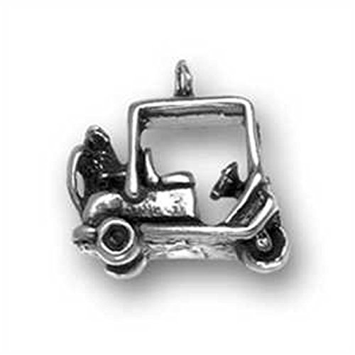 -. Title : Sterling Silver Men's 1.5mm Box Chain 3D Golfers Golf Cart Holding Golf Clubs Sports Pendant Necklace