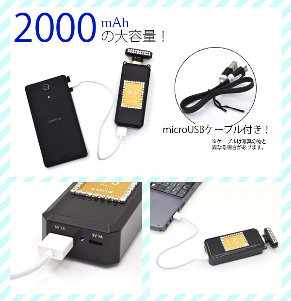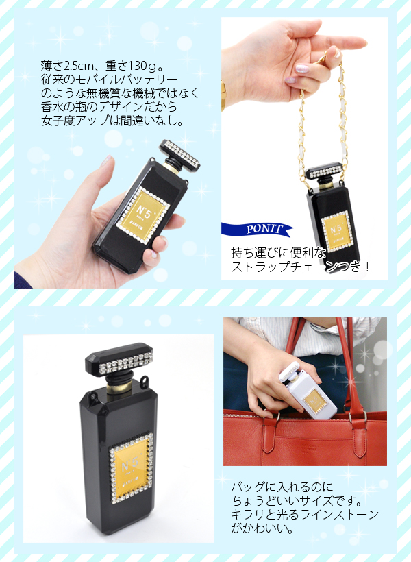 キラキラ♪2000mAhデコ香水型モバイルバッテリー