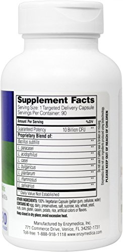 -. Binding : Health and Beauty -. Brand : Enzymedica -. Color : Parent -. Feature : Supports healthy intestinal microflora balance / Enteric coated to ensure its delivery into the intestinal tract / The probiotics chosen for Pro-Bio have a history of beneficial use / Well tolerated by infants, adults, and the elderly -. IsAdultProduct : 0 -. Label : Enzymedica -. Manufacturer : Enzymedica -. PackageQuantity : 1 -. ProductGroup : Health and Beauty -. ProductTypeName : HEALTH_PERSONAL_CARE -. Publisher : Enzymedica -. Studio : Enzymedica -. Title : Enzymedica - Pro Bio
