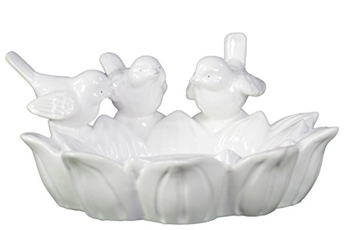 -. Title : Urban Trends Ceramic Bird Feeder with Three Birds Gloss, White