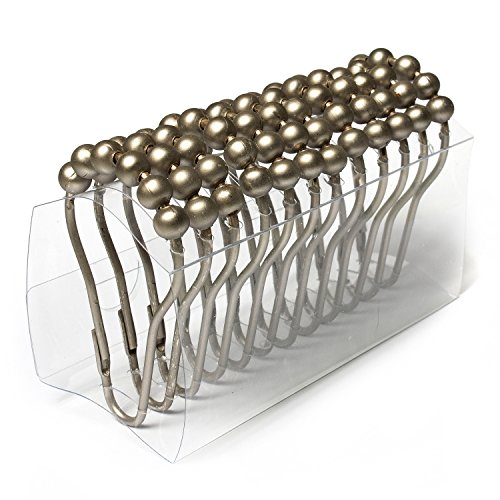 - Package includes 1 shower curtain liner and 1 pack of 12 chrome roller Ball hooks