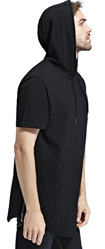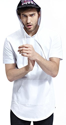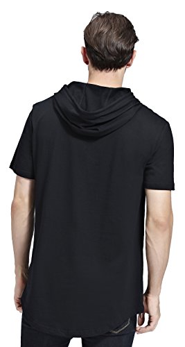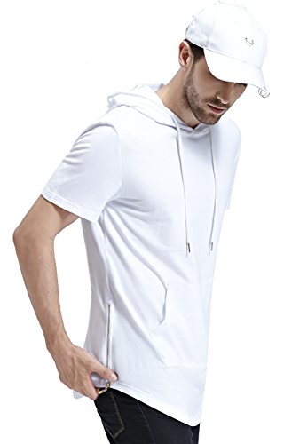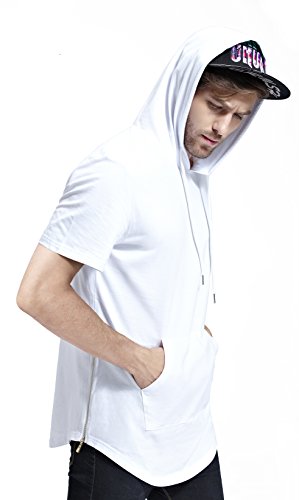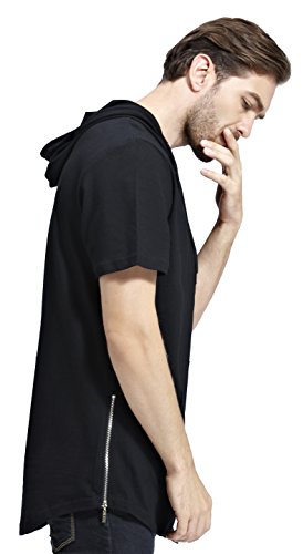 -. Title : Bertte Mens Hipster Hip Hop Longline Curved Hem Short Sleeve Hoodie Zipper T-shirt