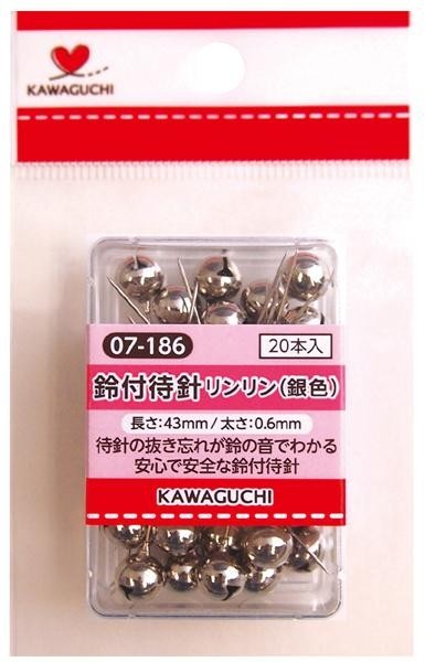 待針の抜き忘れを鈴の音が教えてくれます。保管に便利な透明ケース入り。 製造国:日本 素材・材質:スチール 商品サイズ:長さ約43mm、太さ約0.6mm ※サプライヤー直送品 ご注文後2~3営業日後の出荷となります【商品名】KAWAGUCHI(カワグチ) ソーイング手芸用品 鈴付待針 リンリン 銀色 20本入 07-186