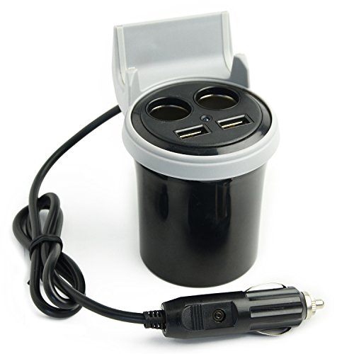 -. Title : 12 Volt / 24 Volt Cup Shape Dual USB Car Charger 3.4A with Dual Car Cigarette Lighter Socket + Device Holder