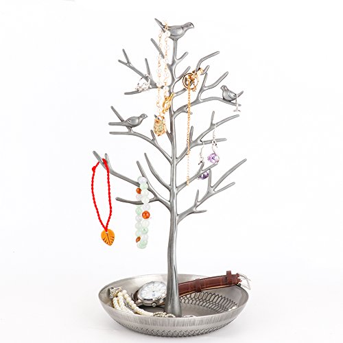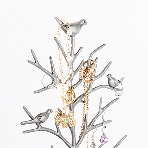 Bidlsbs Antique Birds Tree Stand Jewelry Display Necklace Earring Bracelet Organizer Holder (Deep canyons silver)