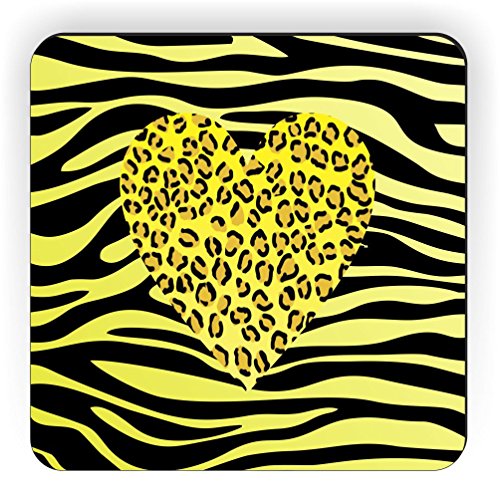 Rikki Knight Yellow Leopard Heart on Zebra Background Design Square Fridge Magnet
