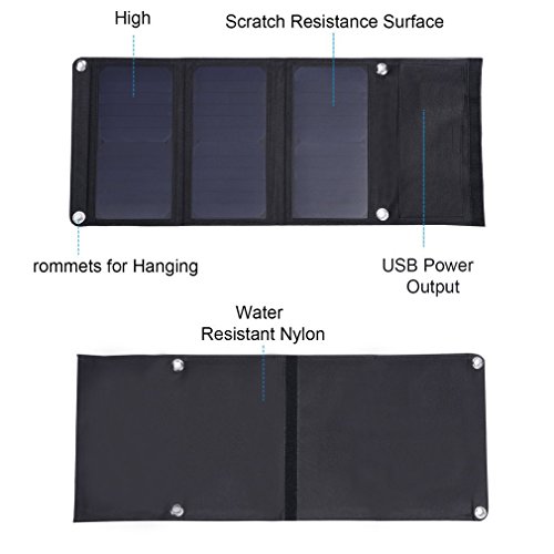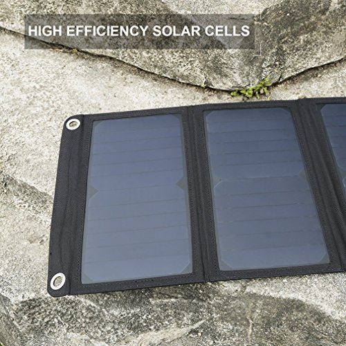 ►Fast Charging Technology: Dual USB Solar Charger delivers the fastest possible charging speed up to 2 amps overall under direct sunlight. 21 watt SunPower solar array is 21.5-23.5% efficient, providing enough power to charge two devices simultaneously.
