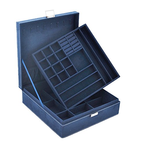 -. Title : Lavie 2-layer Square-shaped Jewelry Box Suede Jewelry Organizer Storage with Lock,Christmas Gift (Dark blue)