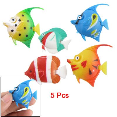 -. Feature : Product name: aquarium fish ornament / Material: plastic / Biggest Size: 4. 5 x 5 x 1. 7cm/ 1. 8" x 2" x 0. 7" (L*W*T) / Weight: 30g / Package: 5 x aquarium fish ornament